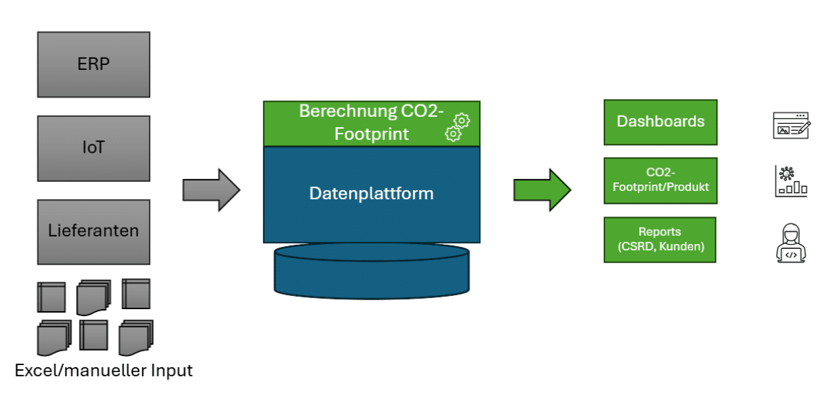 Unternehmen, die ihre bestehenden Datenquellen intelligent integrieren und strukturieren, schaffen die Grundlage für transparente, auditierbare und steuerbare CO₂-Footprints – skalierbar über Produkte, Standorte und Lieferketten hinweg.