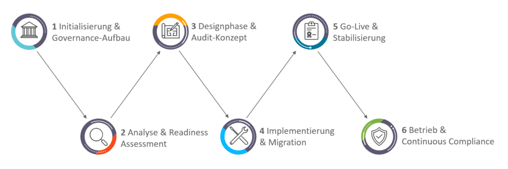- Go-Live-Freigabe durch das Compliance-Board auf Basis der dokumentierten Testergebnisse und Audit-Nachweise